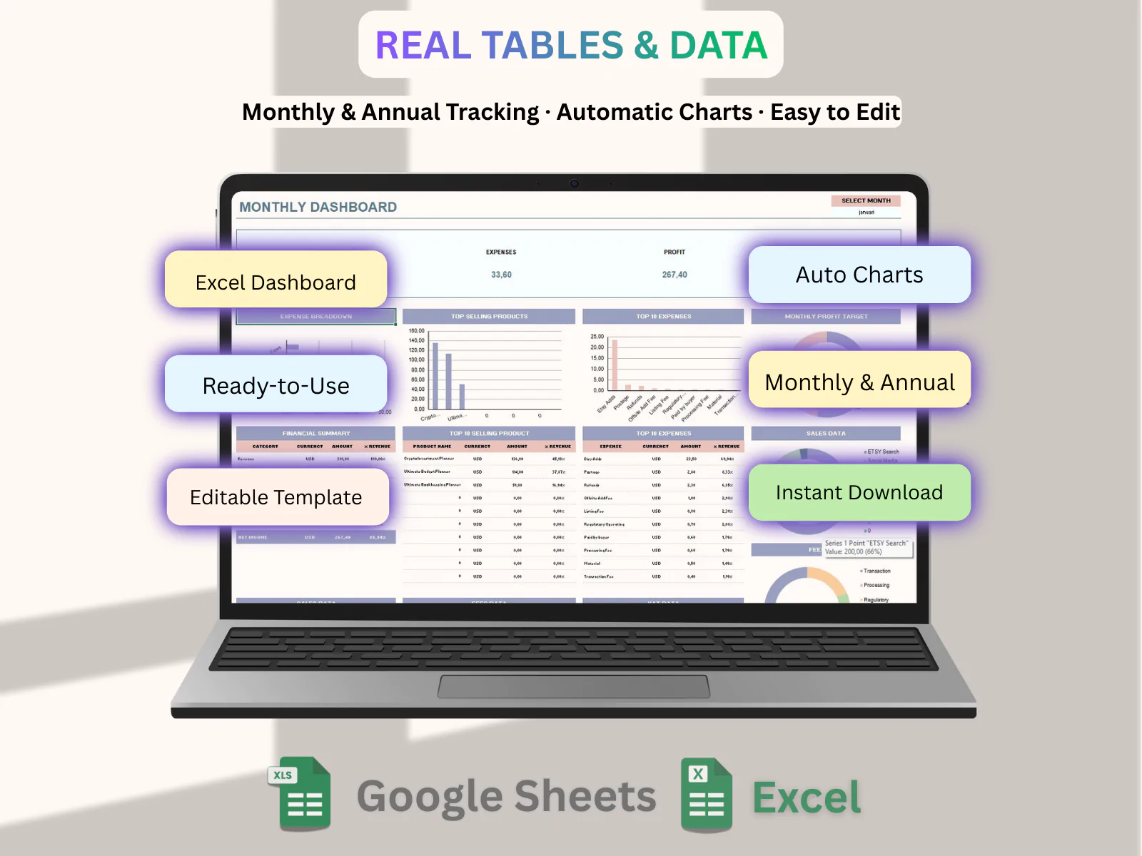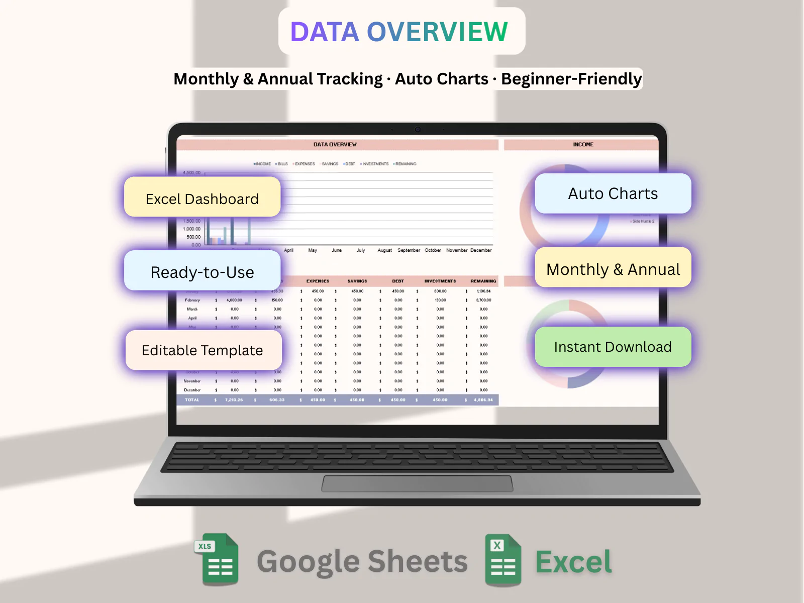 ake control of your finances with this easy-to-use Budget and Expense Tracker Spreadsheet. This template helps you organize income, track expenses, and understand your monthly spending in one simple dashboard.