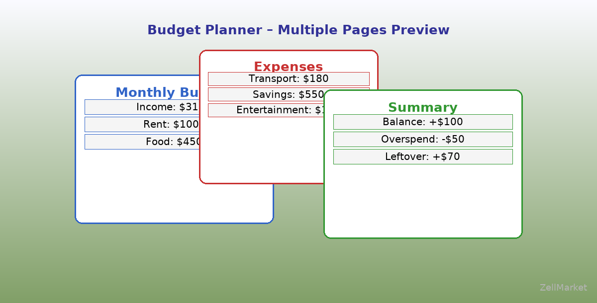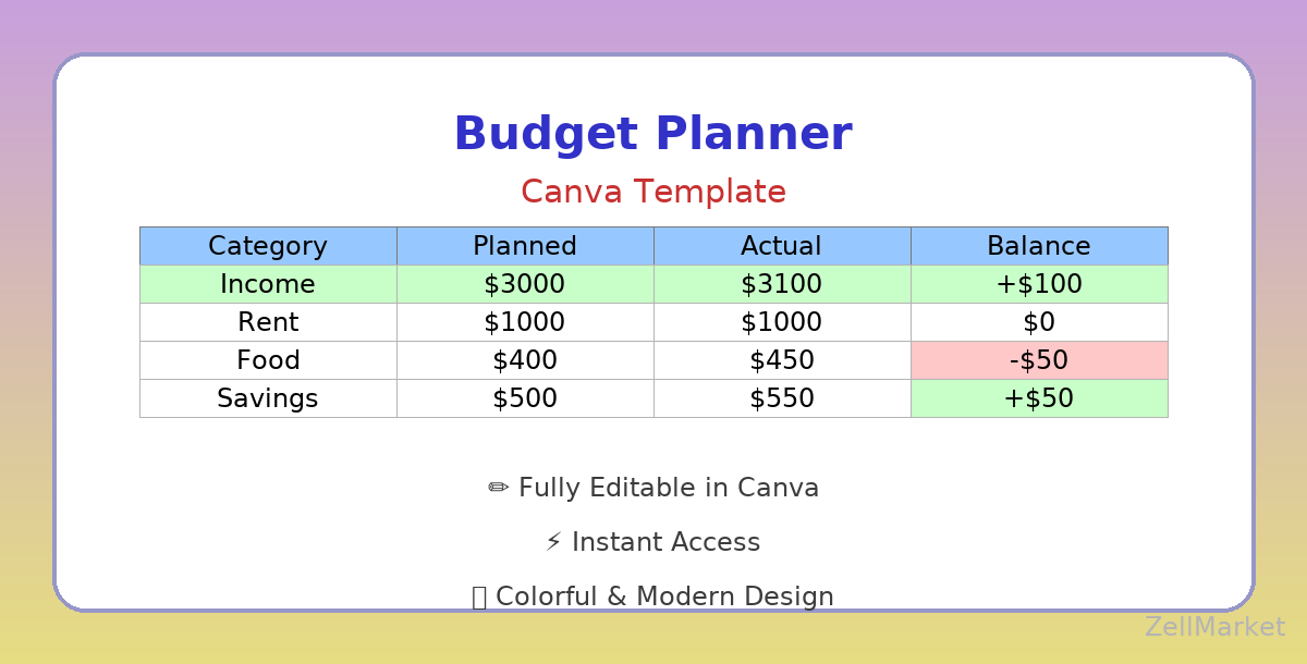 Easily customizable, this template helps you track income, expenses, and savings with a clean and modern layout.