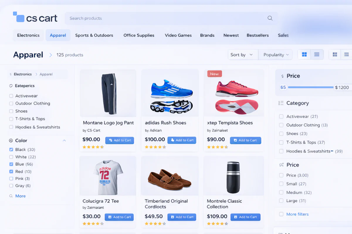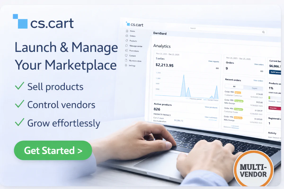 Launch a full-featured multi-vendor marketplace with vendor ratings, advanced commissions, mobile app support, and flexible vendor management — powered by CS-Cart PLUS.