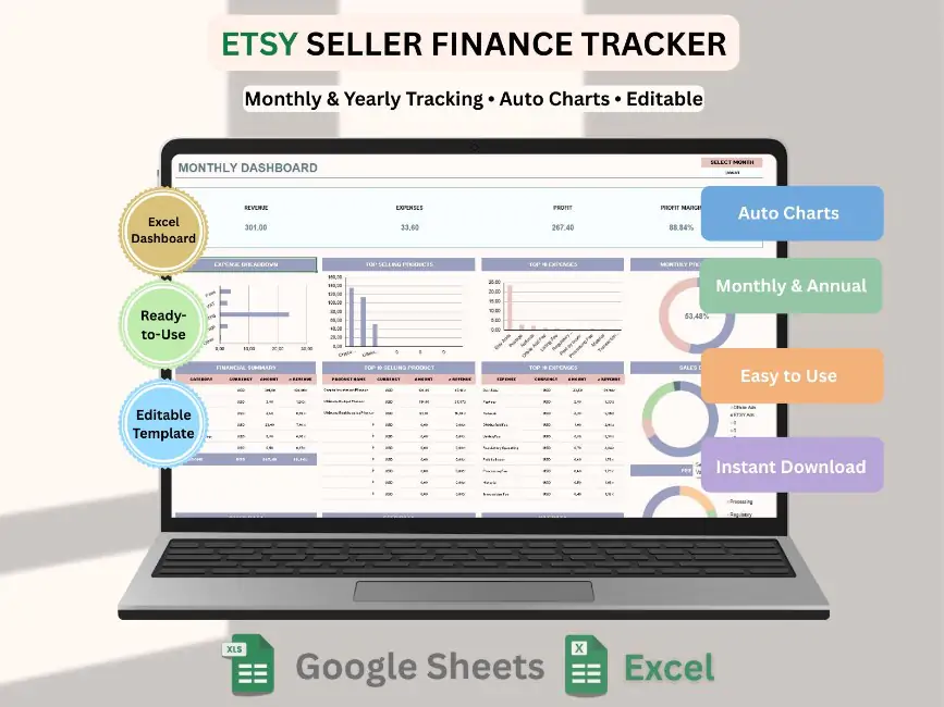 Designed for Etsy sellers who want clear insights into sales, expenses, fees, and profit — without complicated accounting software.