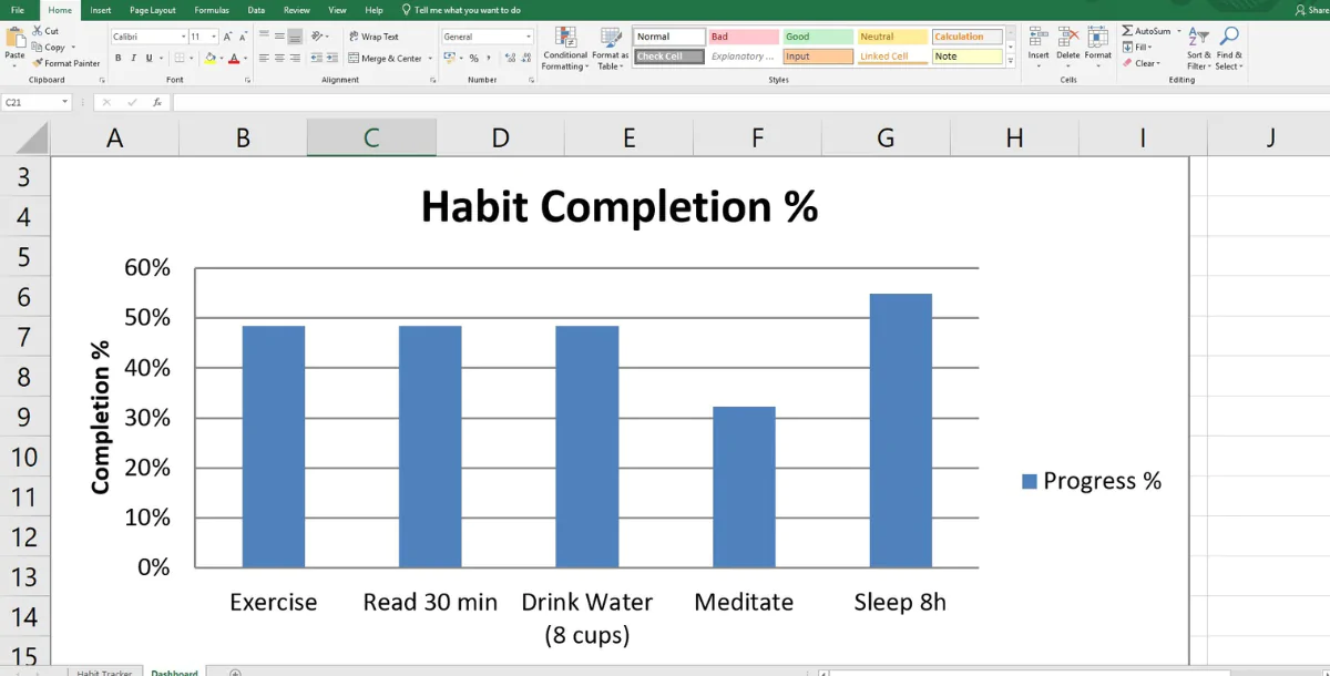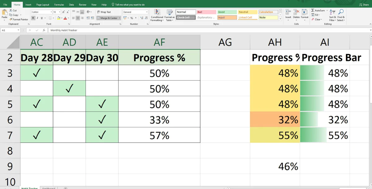 Build better habits with this Habit Tracker Excel template. Track up to 30 days for each habit, mark daily completions, and instantly see your progress. Includes: