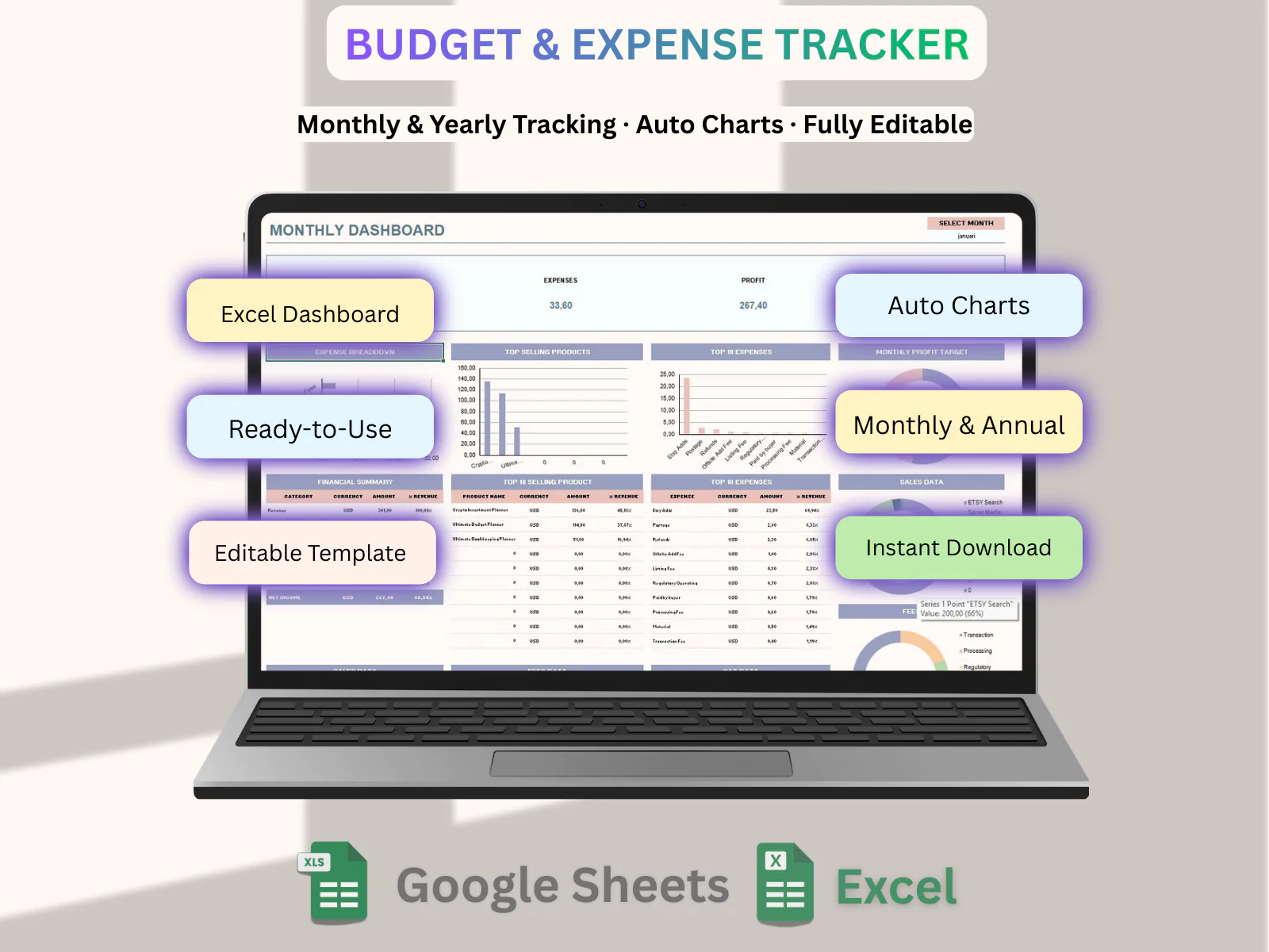 Track your expenses easily with this Simple Expense Tracker Spreadsheet, created especially for beginners and non-technical users.